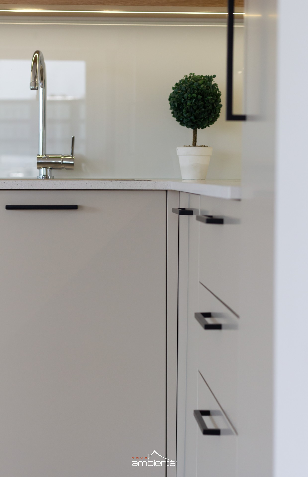 Custom-made kitchens specially designed for this project attract attention with their simplicity and minimalism. This is also one of the reasons why NovaAmbiente kitchens will be perfect for any new tenant of the River Walk facility, because with a little effort and detail, they can be easily adapted to your style and needs.